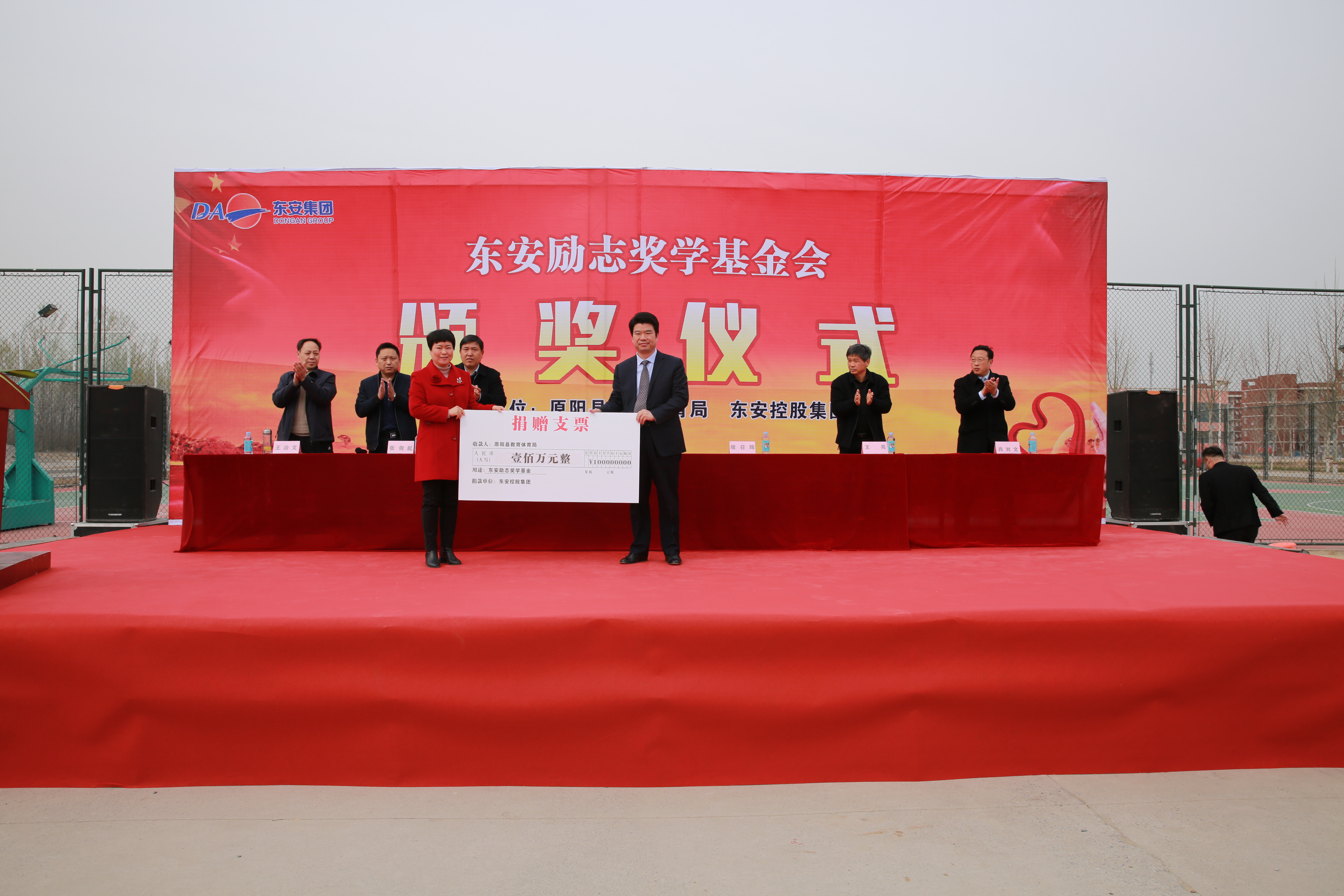 本學期頒獎儀式,東安控股集團捐資100萬元,受獎范圍包括高考考入清華、北大、“985”院校的學生、全縣高中、初中、小學的學生。