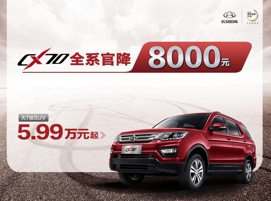 因此,為對(duì)這樣的銷售戰(zhàn)果乘勝追擊,達(dá)到長安CX70月銷沖兩萬的成績,4月20日,長安歐尚調(diào)整營銷策略,官方宣布CX70全系官降8000元,其中標(biāo)準(zhǔn)型的降幅更是達(dá)到1萬元,此輪調(diào)整之后,CX70的售價(jià)區(qū)間已下探至5.99-7.69萬元。